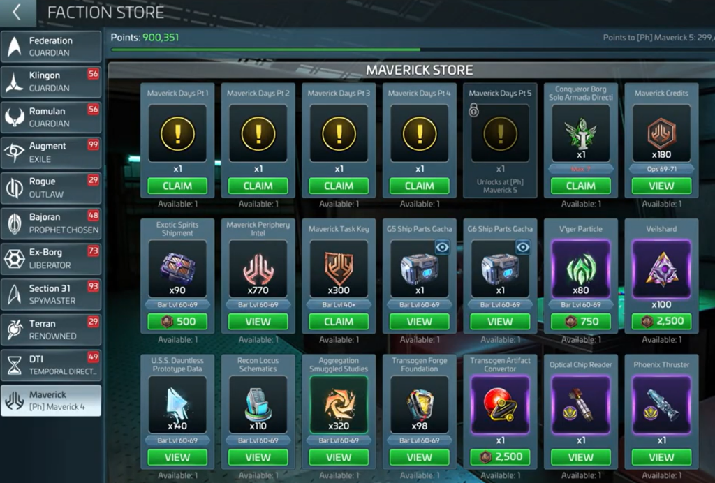 - V’ger Particle Bundle unlocks in the Maverick Faction Store (first scaling segment)