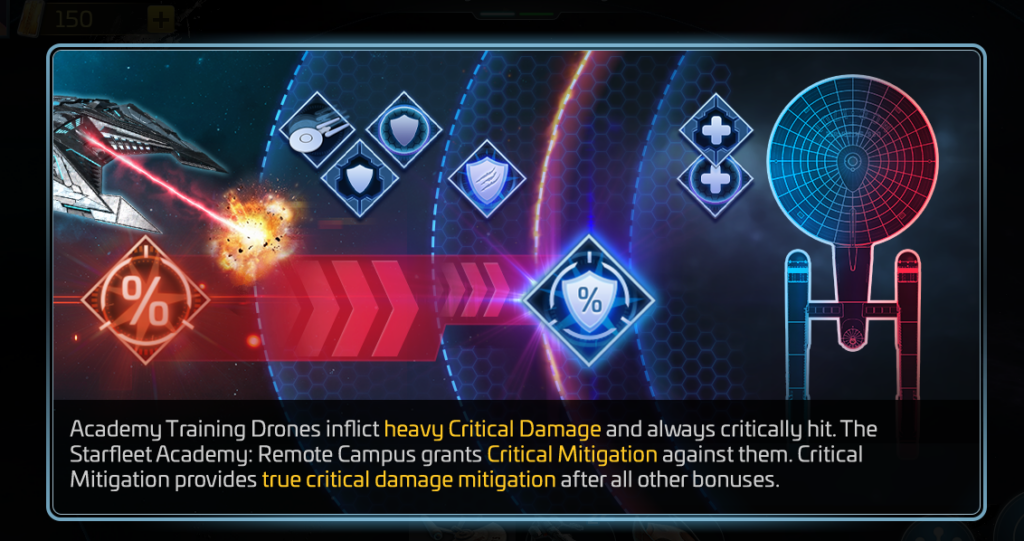 Located deep in G6 and G7 space, the new Starfleet Academy loop is split into two core activities: Starfleet Academy Space and Duo Wave Defense. This system is built around the interaction between Critical Damage and Critical Mitigation, creating a new layer of strategy and progression.