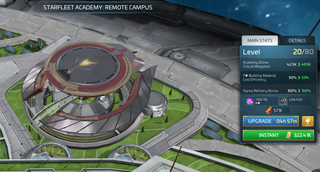 The Starfleet Academy: Remote Campus is a new building and the primary source of Critical Mitigation against Academy Drones found in Starfleet Academy Space and Duo Wave Defense.